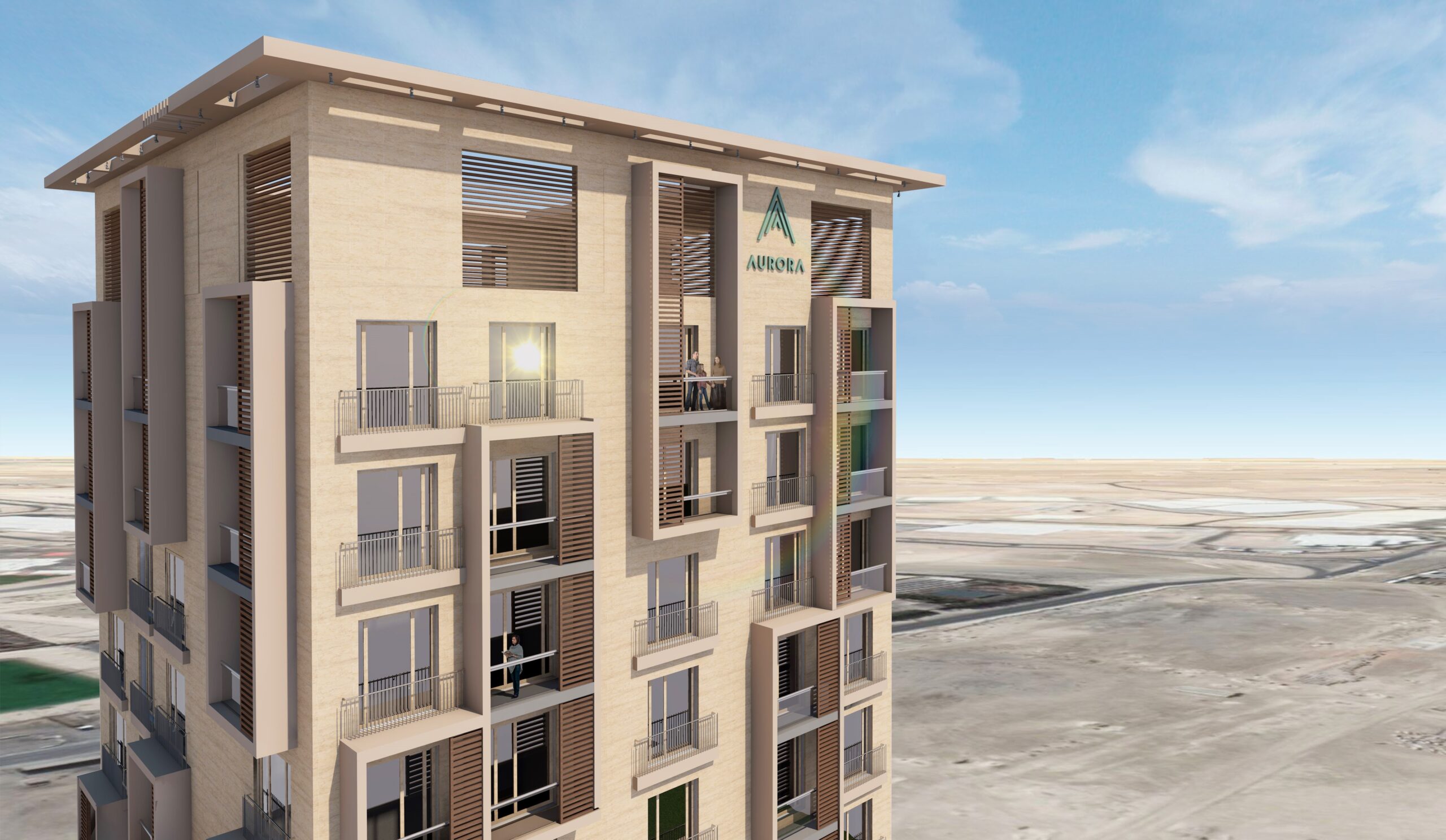 Dieses G+11 Mid-Rise-Wohngebäude von Aurora Development befindet sich auf einem Grundstück in Downtown Jebel Ali und wird aus insgesamt 11 Stockwerken bestehen, darunter ein Untergeschoss + vier Podiumsebenen + 7 Turmgeschosse. Das Kellergeschoss liegt 3,30 m unter dem natürlichen Bodenniveau des Geländes und ist aufgeteilt auf Parkplätze und verschiedene Versorgungsräume, Pumpenräume und Wassertanks, die sich in verschiedenen Tiefen zwischen -3,30 m und 5,15 m befinden. Das Gebäude misst im Grundriss etwa 35,5 m x 65 m. Die Turmteile des Podiums sind der Sheikh Zayed Road zugewandt und haben eine Rückansicht auf den Swimmingpool der Anlage, der sich auf Podiumsebene befindet.