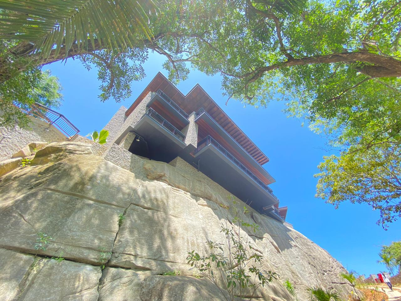 Dieser idyllische, paradiesische Rückzugsort ist ein exklusives, privates Strandresort auf der Insel Mahé auf den Seychellen. Von seinem Sitz auf den Felsen, wo Dschungel auf einen Privatstrand trifft, taucht es die Bewohner in die dramatische Lage ein und optimiert die unberührte Aussicht auf den Indischen Ozean.