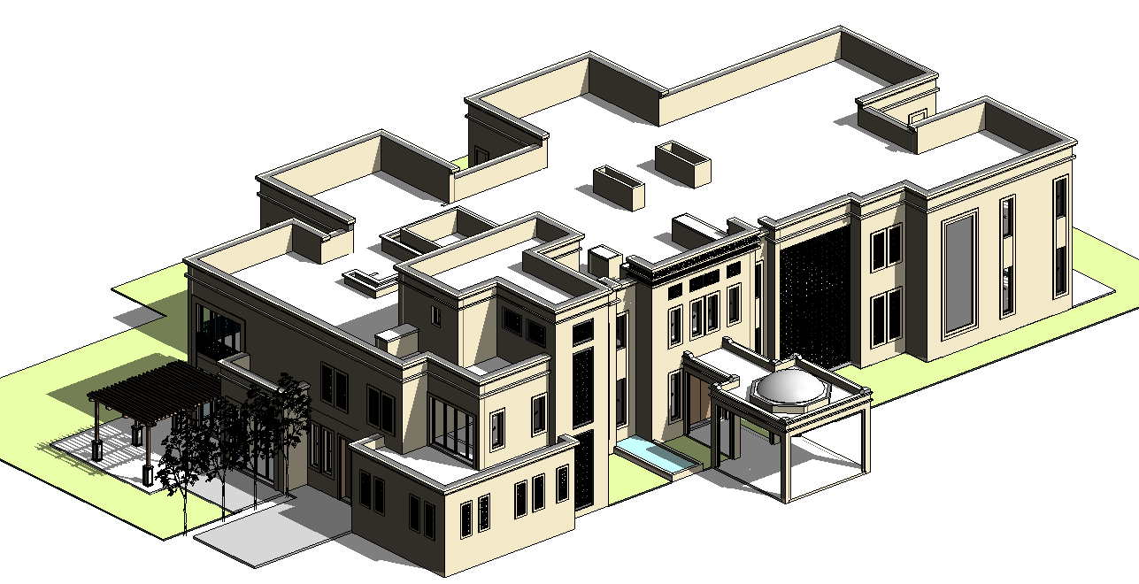 Projektbeschreibung: Auf einem weitläufigen privaten Familienanwesen in Dubai, das auch das exklusive Ladies Club House beherbergt, begleitete die Zakary Jacobs Engineers GmbH den Bau dieser Luxusvilla als verantwortliches Büro für die Tragwerksplanung. Das Gebäude umfasst sieben Schlafzimmer, darunter eine Master-Suite, sowie formelle Majlis-Räume und mehrere Familienbereiche. Die statische Herausforderung bestand darin, die großzügigen, offenen Räume und die traditionellen geometrischen Muster der Fassade strukturell sicher in ein modernes Tragwerk zu integrieren.